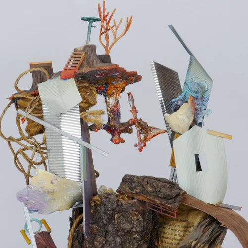 busts (upper torso constructions) for assemblages that, though intending to be a head or face, evolve or devolve into a diverse collection of various objects and associations. Most approximately 20 x 20 x 10 inches on a base, approximating size of a classical bust, partially polychromed.