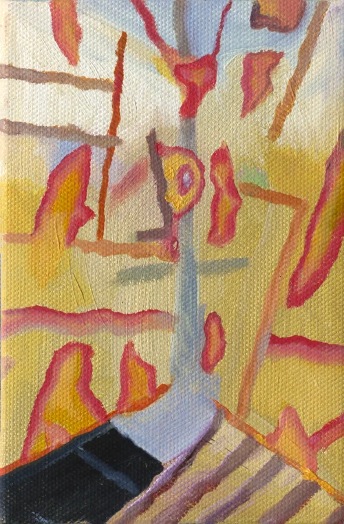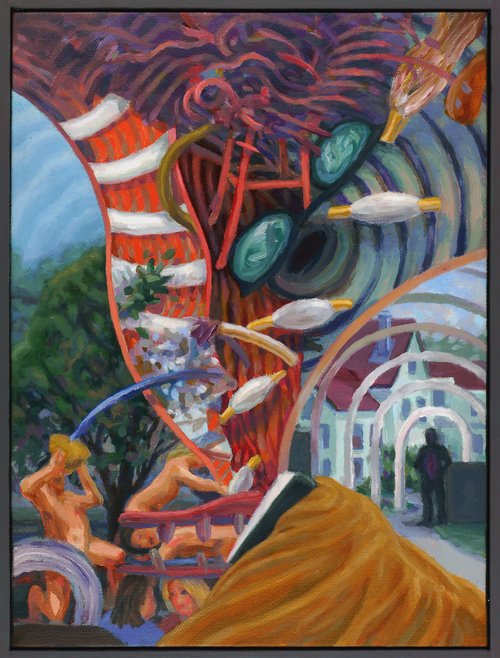 The title of this series reference the painting “Excavation” by William DeKooning at the Art Institute of Chicago. These larger paintings include overlaid images that develop into dense pattern-field textures. Their scale and complexity invites the reading of associations and narrative implications.